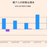 横アニは24年5月期の税引き損益が92億円の赤字に転落している。同期の売上高は前の期比21%減の95億円で、売上高と同等の税引き赤字を抱えており、厳しい財務状況が続いていた中で、制作能力の確保を急いでいたアニメイトが助け舟を出した形だ。